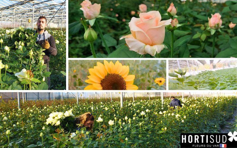 Sa particularité : 8000 m² de roses hors-sol dans une serre recouverte de panneaux photovoltaïques et un hectare supplémentaire pour la culture de tournesols. Un essai réalisé cette saison que Benjamin compte bien approfondir.